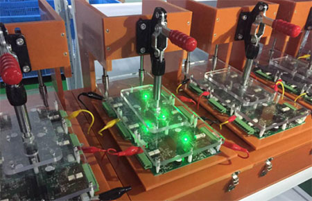 該套系統(tǒng)主要用于對(duì)PH4.0控制器電路板的標(biāo)定。整個(gè)標(biāo)定過程除了對(duì)電流電壓的標(biāo)定,也包括了一開始電路板程序的燒錄,每塊板子從開始燒錄到標(biāo)定完成僅需1分鐘左右,相比人工標(biāo)定,效率提高了100%。整套系統(tǒng)最高可以一輪標(biāo)定72塊板子,標(biāo)定源采用的是橫河CA71校驗(yàn)儀,這一高成本投入,從源頭上保證了每次標(biāo)定的準(zhǔn)確度和人工標(biāo)定所不具有的優(yōu)秀重復(fù)性。該套全自動(dòng)標(biāo)定系統(tǒng),除了最大限度的節(jié)省人力資源,同時(shí)也為聯(lián)測(cè)智能標(biāo)定技術(shù)的發(fā)展提供了一個(gè)良好開端。聯(lián)測(cè)的研發(fā)團(tuán)隊(duì)在標(biāo)定系統(tǒng)中加入的智能識(shí)別技術(shù),當(dāng)標(biāo)定出現(xiàn)錯(cuò)誤時(shí),系統(tǒng)操作界面會(huì)自動(dòng)顯示錯(cuò)誤代碼,我們的工程師就能立馬查明錯(cuò)誤原因,從而進(jìn)行下一步調(diào)試工作,整個(gè)標(biāo)定效率得到了顯著提升。