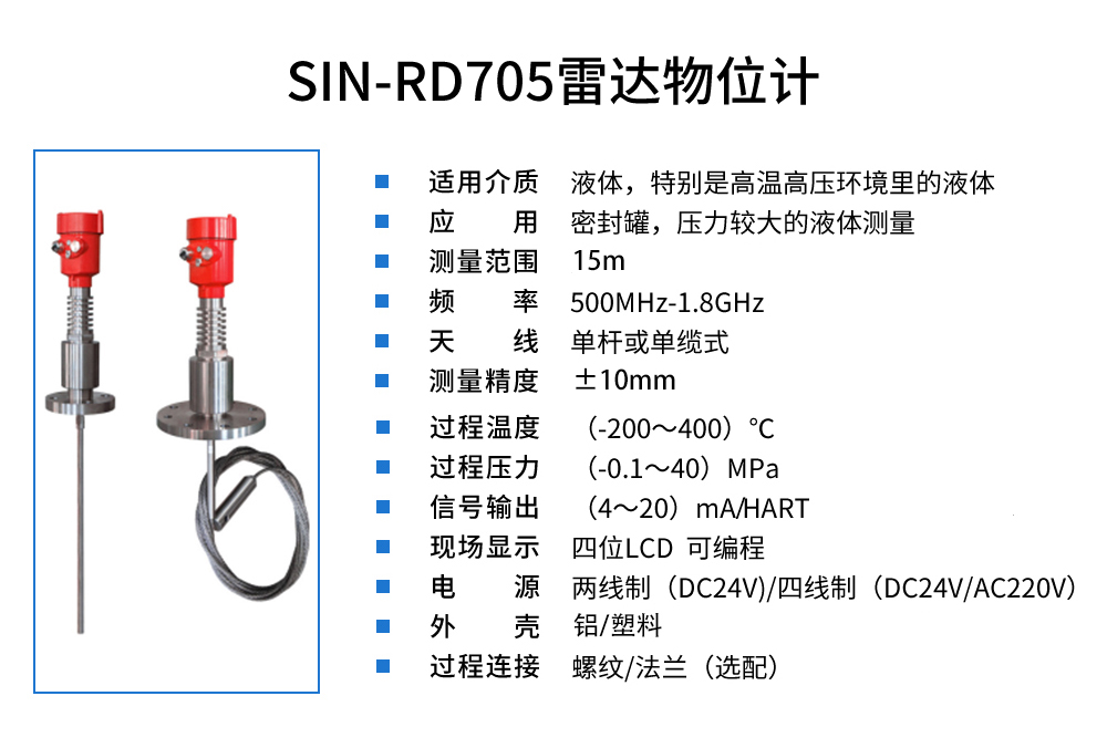 您的位置:首頁 > 雷達液位計 → SIN-RD705雷達液位計_適用于密封罐,高溫高壓液體_