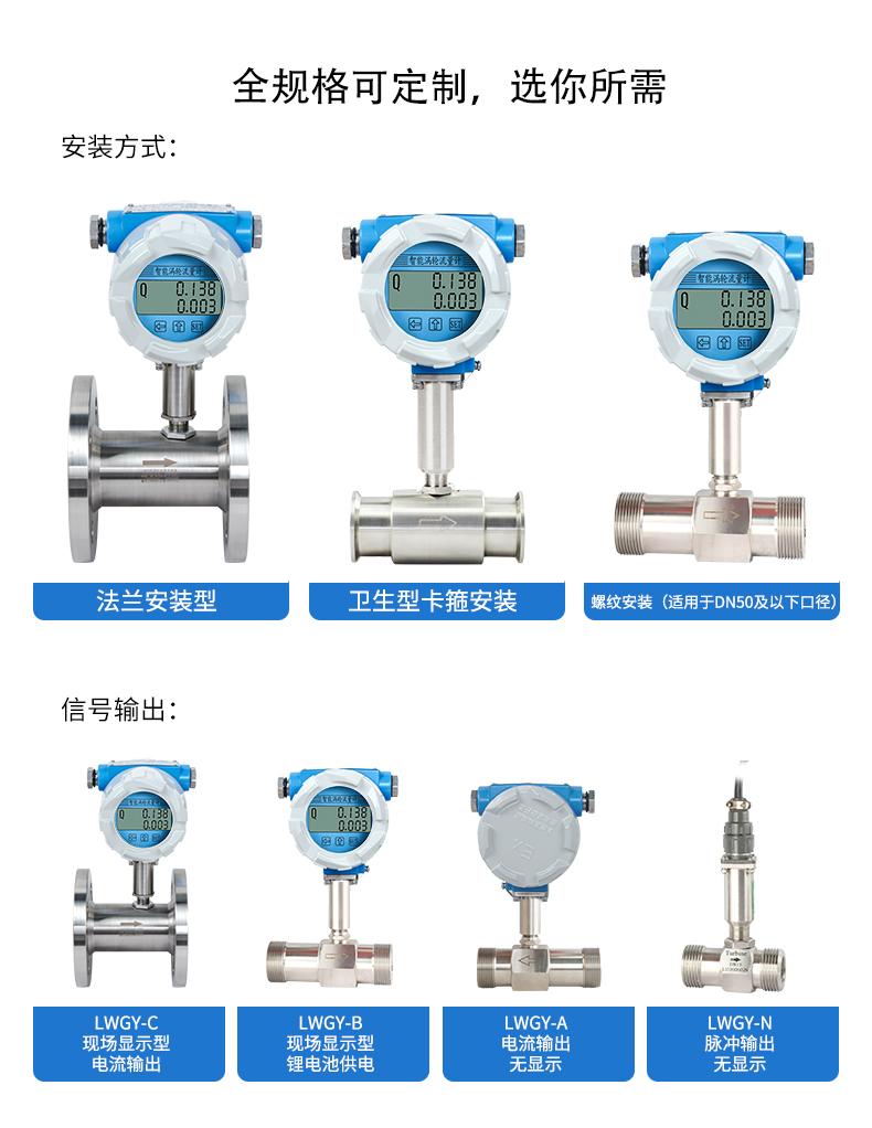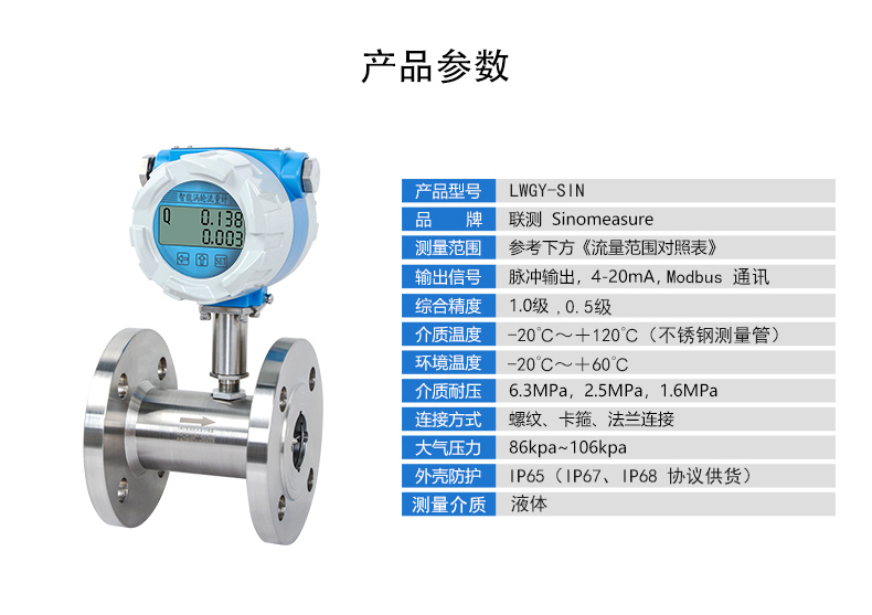 LWGY-SIN系列液體渦輪流量計(又稱渦輪傳感器以下簡稱傳感器)基于力矩平衡原理。傳感器適用于在工作溫度下粘度小于5×10-6m2/s的介質,對于粘度大于5×10-6m2/s的液體,要對傳感器進行實液標定后使用。
