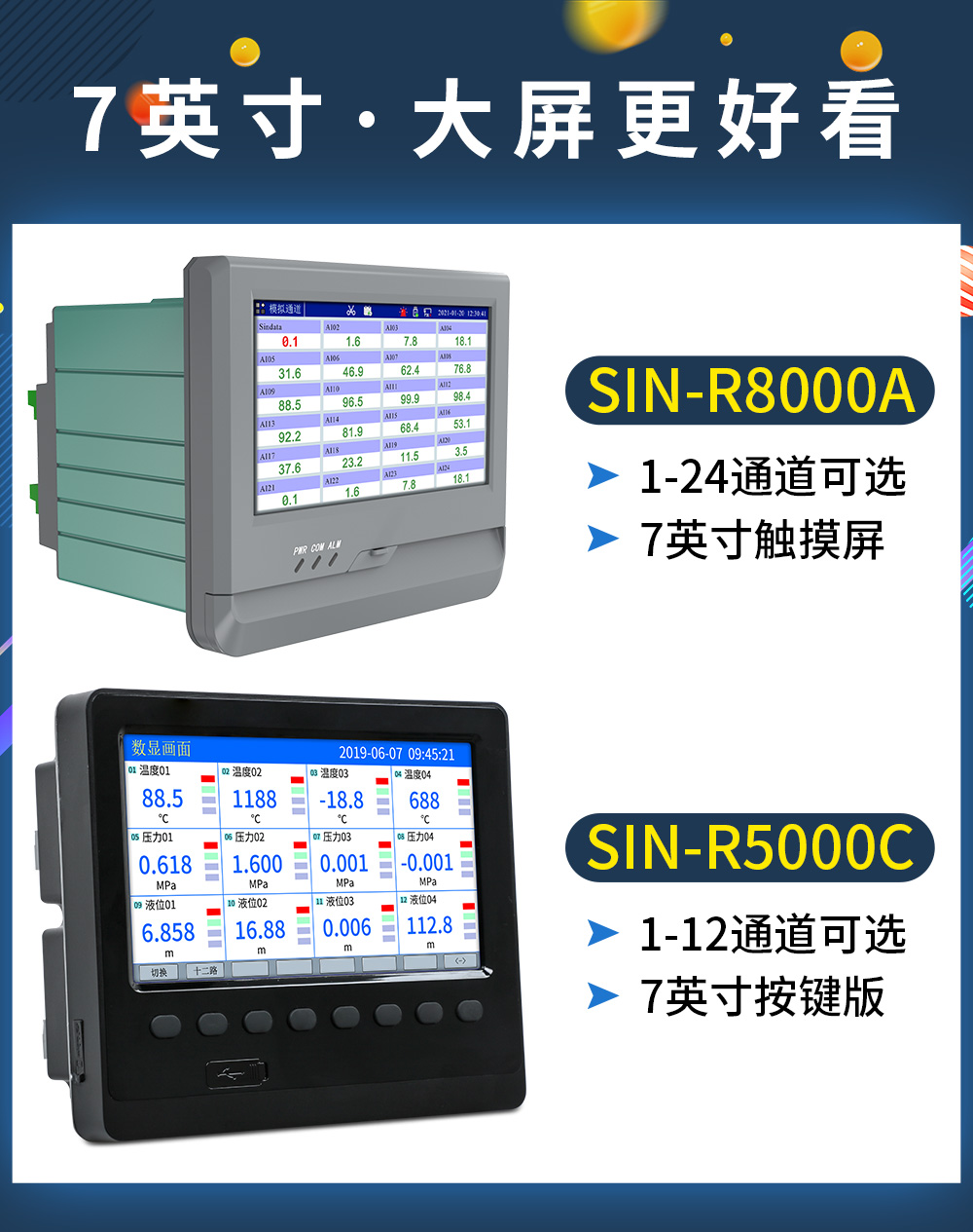 您的位置:首頁 > 無紙記錄儀 → 聯測_SIN-R8000A_(觸摸屏)1-24路可選_7英寸無紙記錄儀_0.5S高速采集_溫度_壓力_多種參數